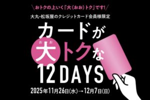 2025年下半期「大丸松坂屋のカードが大トクな12DAYS」開催します! 内容をブログで簡単に紹介します! カードが大トクな12DAYSの日程 開催日:2025年11月26日(水)〜2025年12月7日(日) おトク① …