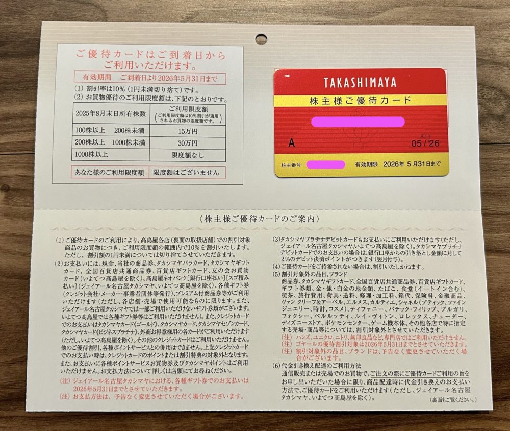 2025年11月下旬に到着した「有効期限が2026年5月31日まで」となっている高島屋株主優待カードで10%割引が適用となるブランドや商品・モノをまとめました。