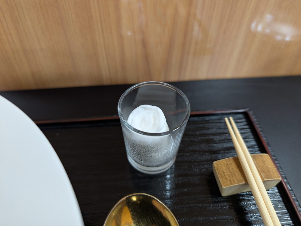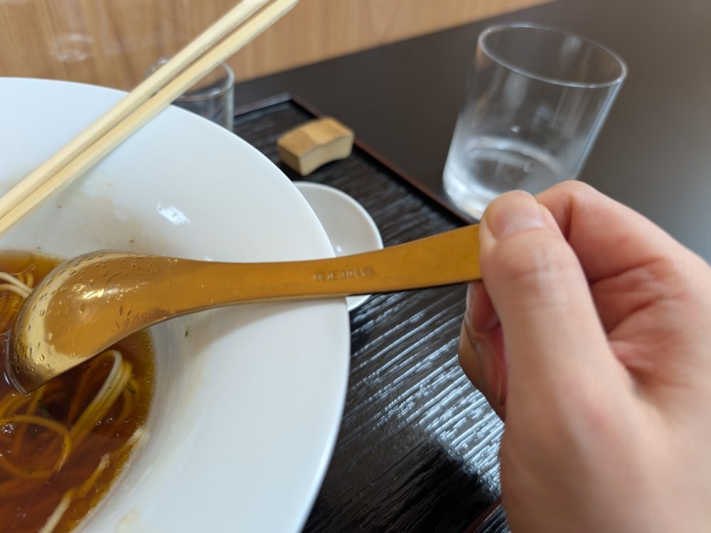 具がなくてとてもシンプルなラーメンの画だと思いますが、カトラリーなどに目を配る、とくいち流のガストロノミーを感じます。