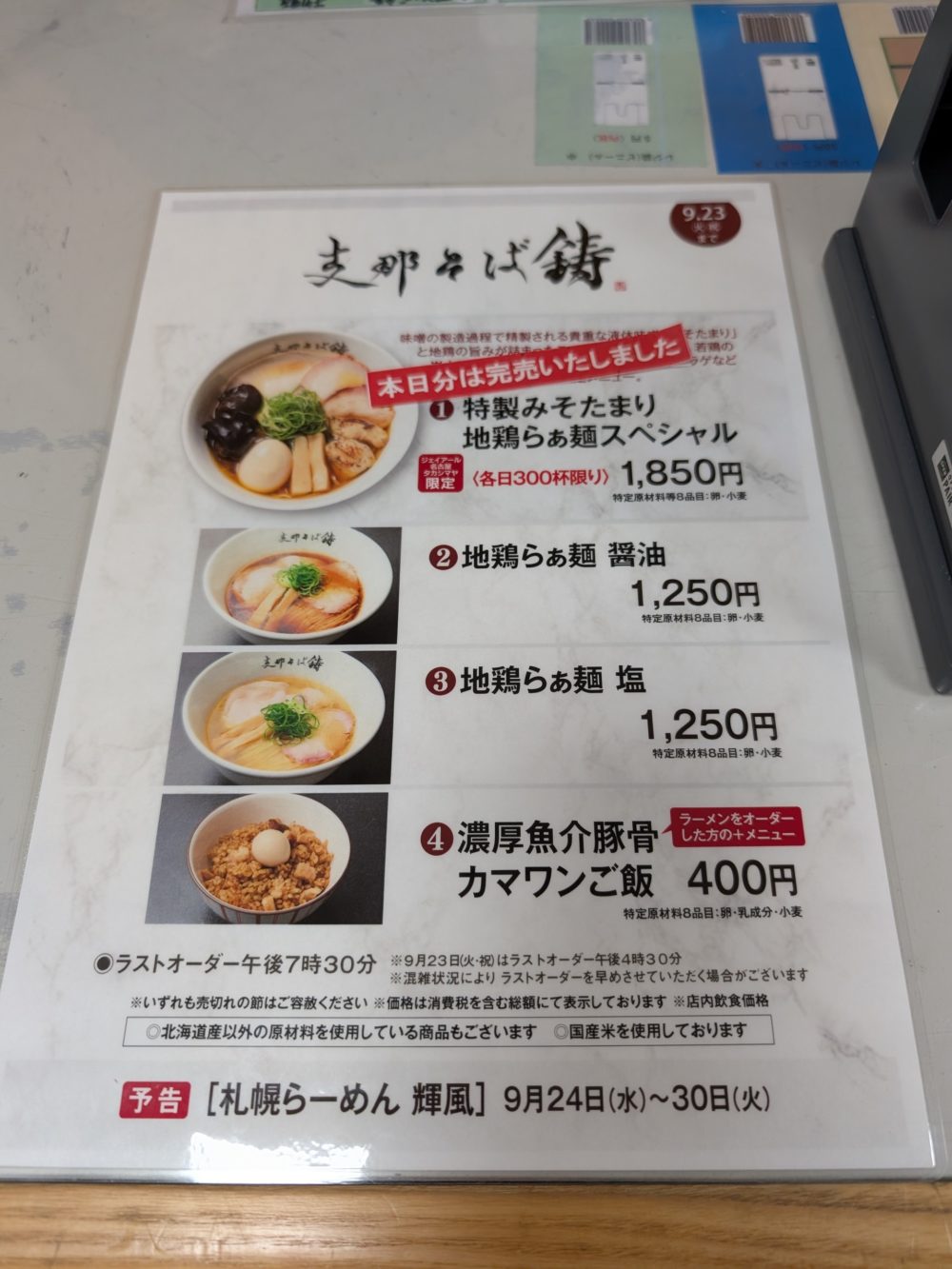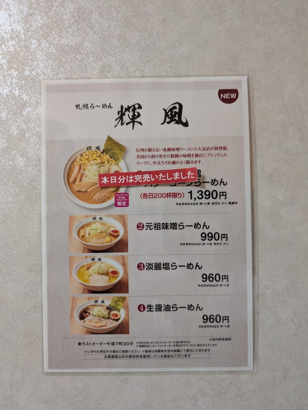 9月24日~9月30日 第三弾!札幌ら~めん 輝風