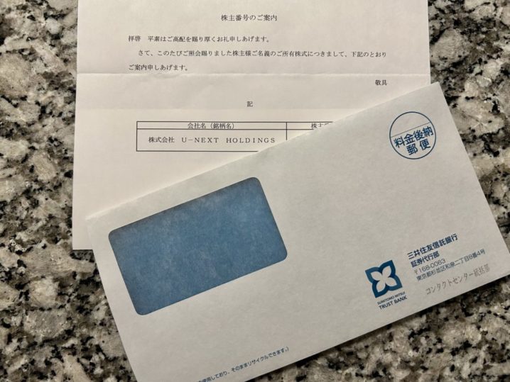 U-NEXT(ユーネクスト)の株主優待ももっとわかりやすいものが届くと思い込みしていたので見落としにつながりました。